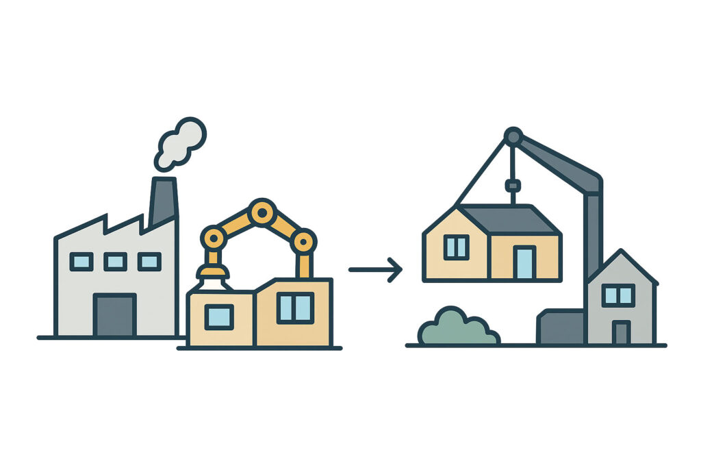 • Modular development builds each home or building inside a precision-controlled factory, where every part is inspected and assembled before being delivered and installed on-site.